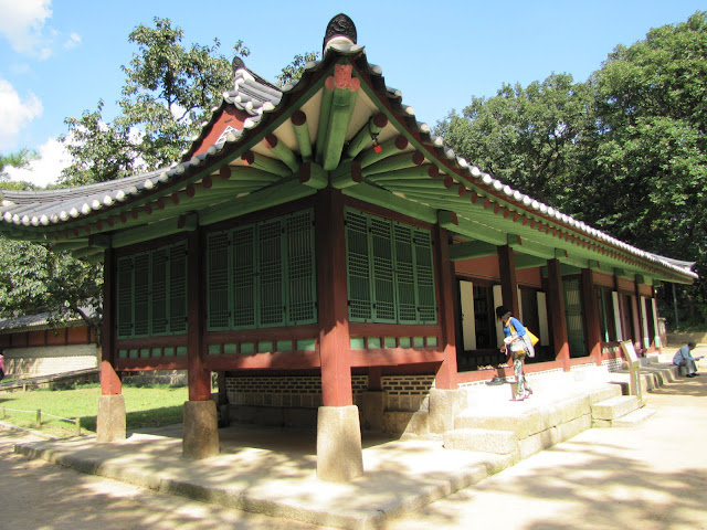 So when the weekend rolled around and the weather was still nice, my coworkers and I decided to go back and give Changdeokgung Palace another try. It was sooo beautiful--It was a series of these buildings (5? 6?) that were dedicated to the king and his resting places (I think. I kind of lost track of what it was about because we were doing too much gawking), and it's all in the middle of this really picturesque forest.